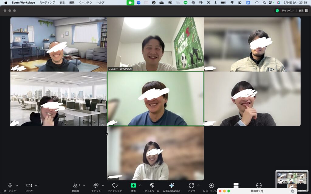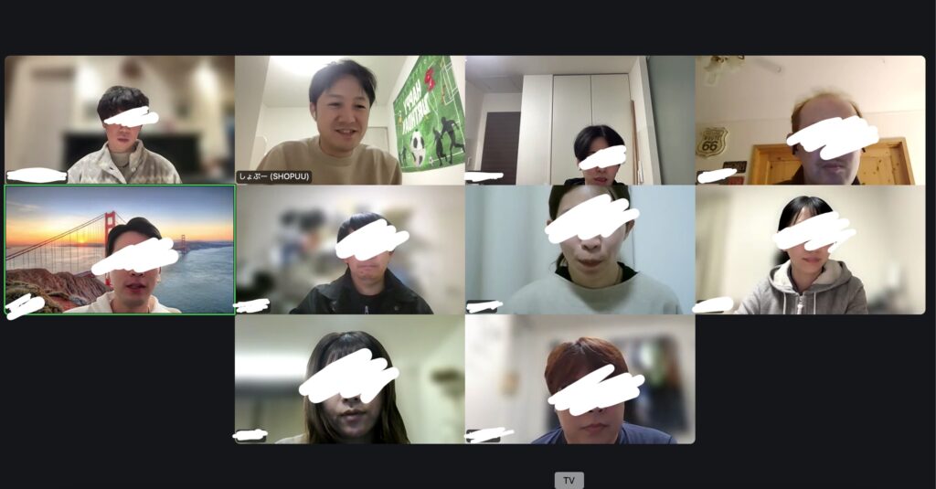 みんなで状況を報告仕合います。大変なときでもみんなが頑張っているか自分も頑張ろう!と思えてくる時間です。これが何と言ってもしょぷコンの醍醐味。選考された10名で最高の仲間作りができます。出会いは一生の宝です。